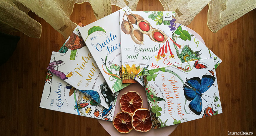 O serie care mi-a plăcut foarte mult, „Magia naturii” cuprinde 6 titluri: Gândacii sunt sfioși, Cuiburile sunt gălăgioase, Fluturii sunt răbdători, Semințele sunt somnoroase, Ouăle sunt tăcute, Pietrele sunt vii. Fiecare titlu își propune să descrie o părticică de natură. Textele sunt minimale, însă ilustrațiile sunt absolut spectaculoase. Pot fi un prilej potrivit de a face cunoștință cu minunile naturii.