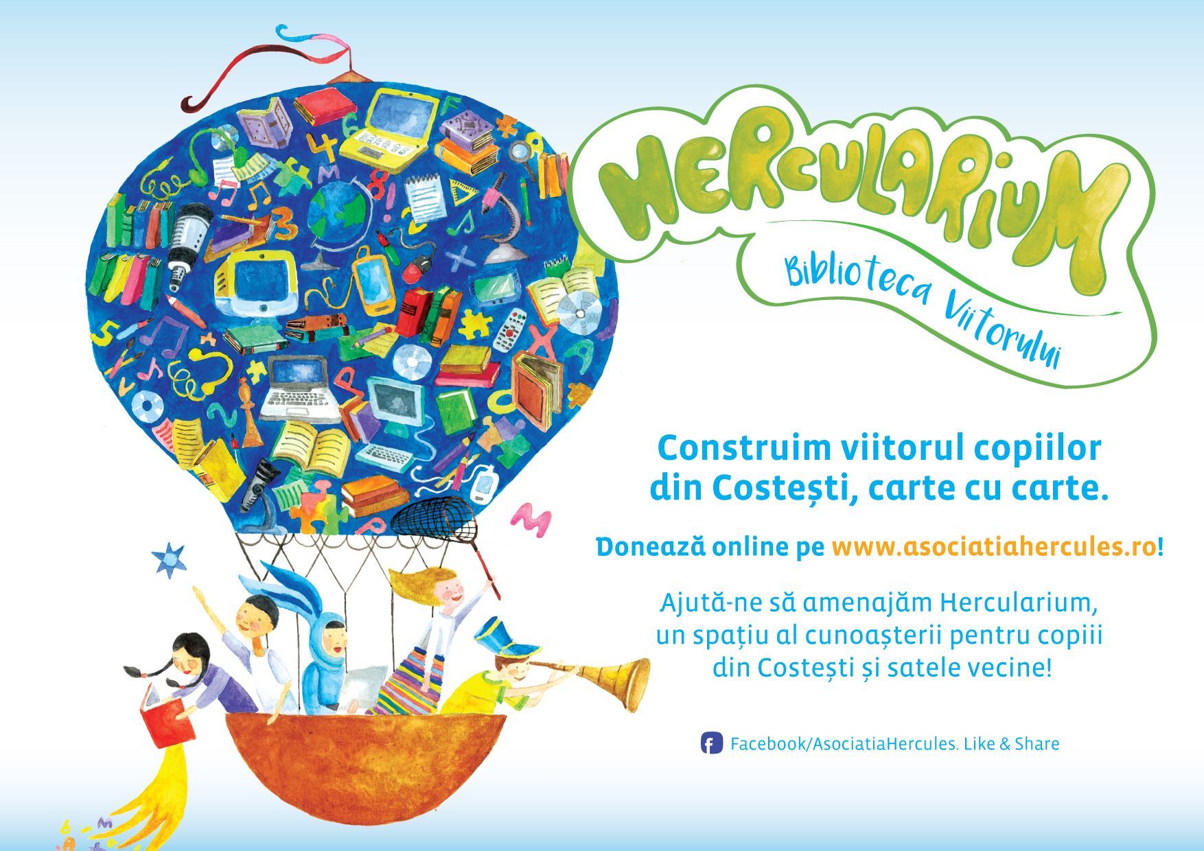 Asociația Hercules din Costești își propune să înființeze HERCULARIUM, un adevărat centru de învățare modern și atrăgător pentru toți copiii și tinerii din orașul Costești și satele vecine. HERCULARIUM va fi format din bibliotecă, sală de lectură, sală de calculatoare și multimedia, ludotecă pentru copiii mici, spațiu de joacă, spațiu pentru evenimente culturale și training-uri pentru părinți. HERCULARIUM își propune să completeze instruirea de care elevii beneficiază la școală, oferindu-le șansa de a participa la activități atractive. Pentru că puține familii din această comunitate săracă din județul Argeș le pot oferi copiilor porția necesară de educație non-formală de care au nevoie pentru o dezvoltare sănătoasă. Puțini părinți le pot transmite micuților dragostea de carte prin puterea exemplului personal.