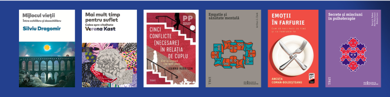 Colecția Psihologie Practică le propune cuplurilor să învețe cum să comunice mai eficient, plecând de la cele Cinci conflicte (necesare) în relația de cuplu. Ghid le va fi Joanna Harisson, fost avocat pentru divorțuri și psihoterapeut. Cei năpădiți de păreri de rău, vor găsi un sfat bun în cartea celebrului terapeut cognitivist Robert L. Leahy, Ce-ar fi fost dacă… Eliberarea de regrete. Terapeuții, consilierii și psihiatrii pot afla cum să detecteze jumătățile de adevăr când e vorba despre Secrete și minciuni în psihoterapie (Barry A. Farber et al.), dar și cum să lucreze mai profund cu pacienții din cabinet, cum arată Arthur J. Clark în Empatie și sănătate mentală. Părinții, educatorii sau bunicii au acum la îndemână un excelent Ghid pentru rezolvarea dificultăților psihice ale copiilor și adolescenților, cei doi autori (psihiatrii P. Bryden și P. Szatmari) acoperind un spectru larg de probleme: de la anxietate, depresie și insomnie la ADHD, autism și anorexie. Colecția jungiană Misterele Inconștientului Colectiv se bucură de două noi apariții: Mijlocul vieții, o abordare a crizei vârstei de mijloc semnată de Silviu Dragomir, respectiv Mai mult timp pentru suflet, un îndemn la a ne regăsi vitalitatea din partea Verenei Kast. În fine, colecția Psihologia pentru toți vă va ajuta să înțelegeți mai bine două probleme curente: Procrastinarea (Fuschia Sirois), respectiv mâncatul ”pe fond nervos”, explicat de psihoterapeuta Ancuța-Coman Boldișteanu în Emoții în farfurie. Cum să faci pace cu tine și cu farfuria ta.
