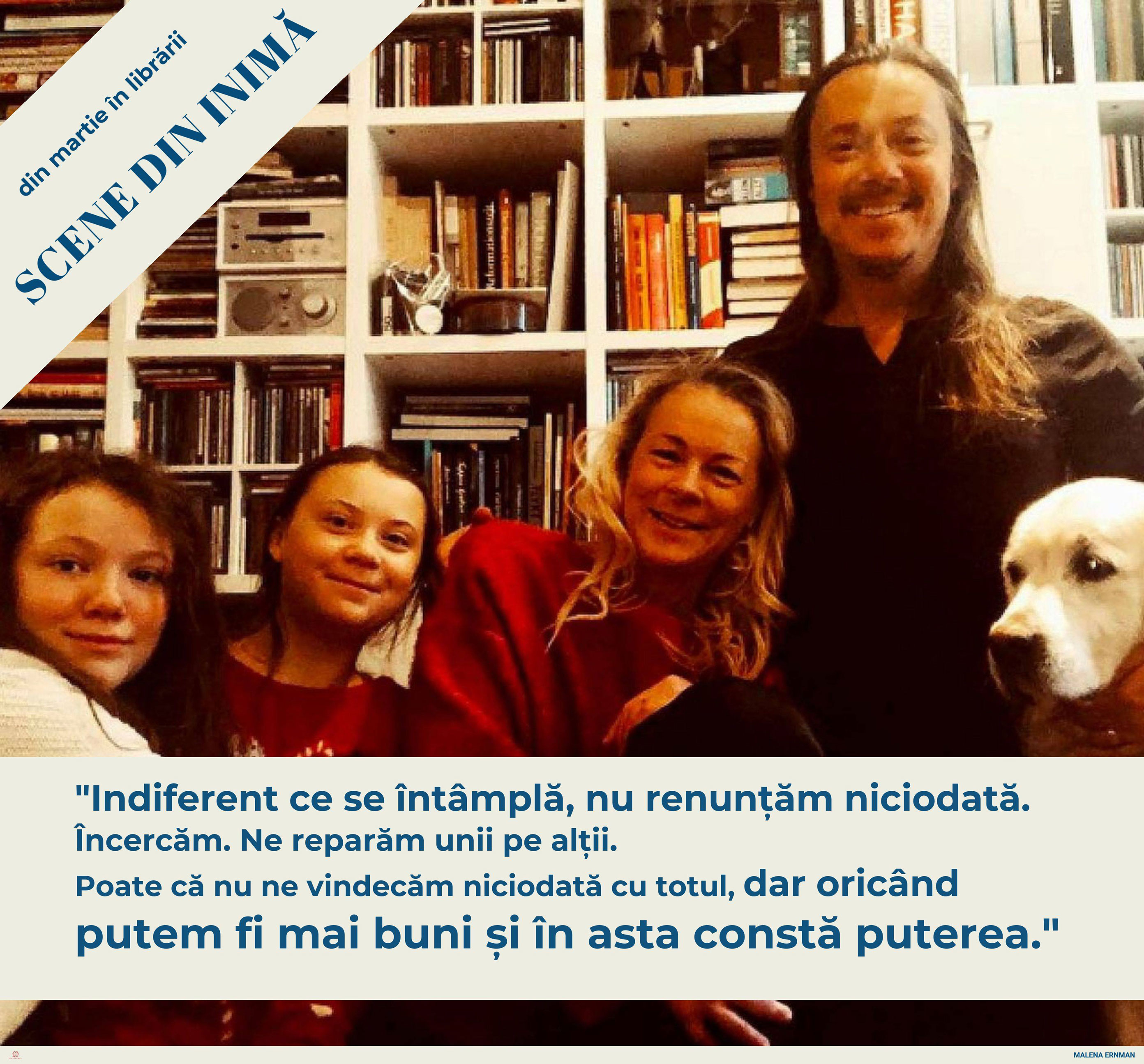Publicată în Suedia în 2018 și de curând apărută în românește la Editura Seneca (traducere din suedeză de Ariadna Ponta), Scene din inimă este cartea semnată de Malena Ernman împreună cu soțul ei, Svante Thunberg, și fetele sale – cunoscuta activistă în domeniul climatic Greta Thunberg, respectiv Beata, sora ei mai mică.