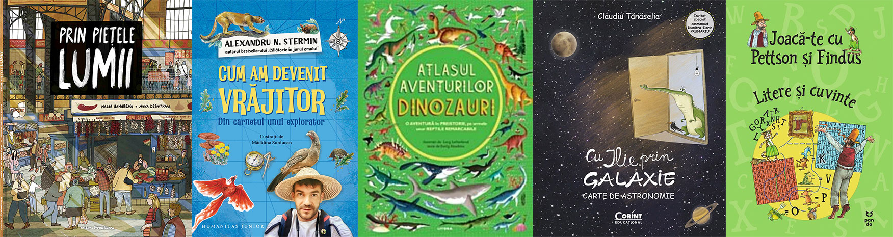 • Cum am devenit vrăjitor. Din carnetul unui explorator, de Alexandru N. Stermin: „Biolog pasionat și călător neobosit în spațiu, în timp și în sine însuși, Alexandru N. Stermin este, înainte de toate, un om care iubește magia lumii înconjurătoare, pe care o străbate cu pasul și o cercetează cu priviri mereu curioase. Prin intermediul însemnărilor de față te invită să-l însoțești într-o călătorie fabuloasă prin lume, din trecutul omenirii până în prezentul recent și din cea mai mare mlaștină din Transilvania până în jungla amazoniană.” (Ed. Humanitas Junior)