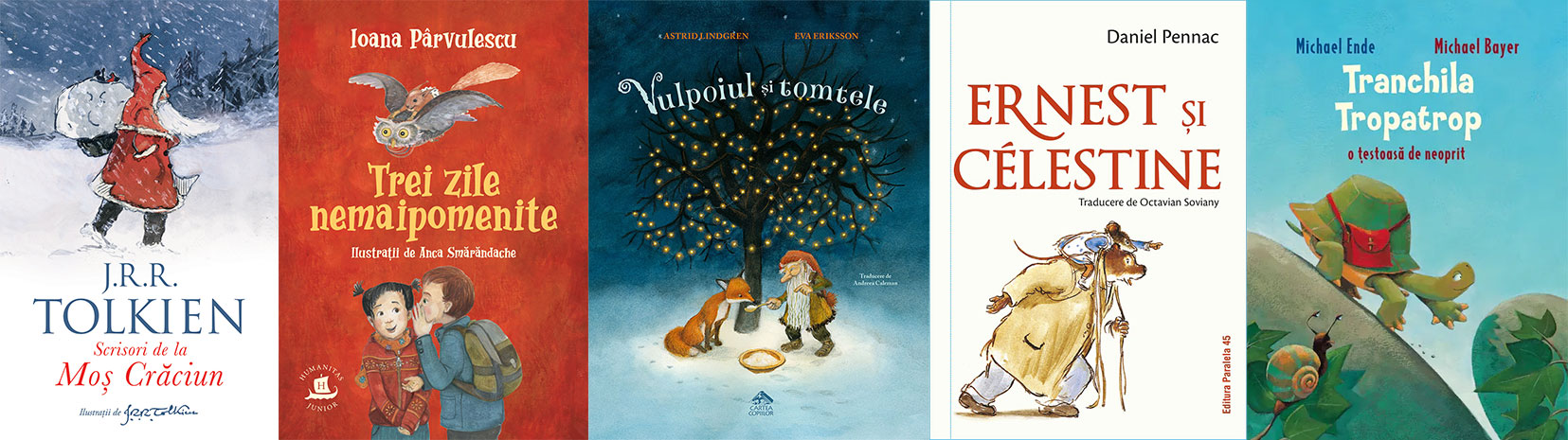 • Ernest și Celestine, de Daniel Pennac: „Acesta este romanul prieteniei dintre un urs și o șoricuță cucerite în pofida tuturor prejudecăților, povestit cu umor și candoare de scriitorul francez Daniel Pennac în amintirea lui Gabrielle Vincent, scumpa sa prietenă de cerneală, hârtie și acuarele.” (Ed. Paralela 45; trad. Octavian Soviany)