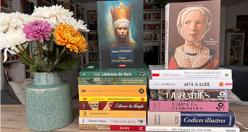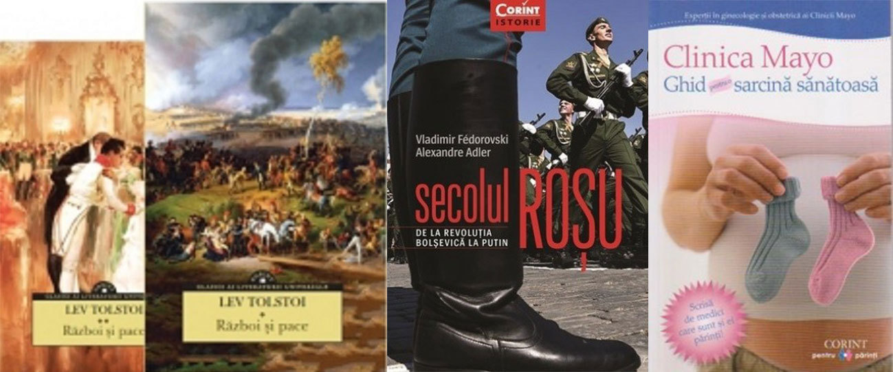 Război şi pace (2 vol.), de Lev Tolstoi; Secolul roşu. De la revoluţia bolşevică la Putin, de Vladimir Fédorovski și Alexandre Adler; Clinica Mayo. Ghid pentru o sarcină sănătoasă, de Cora Radulian.