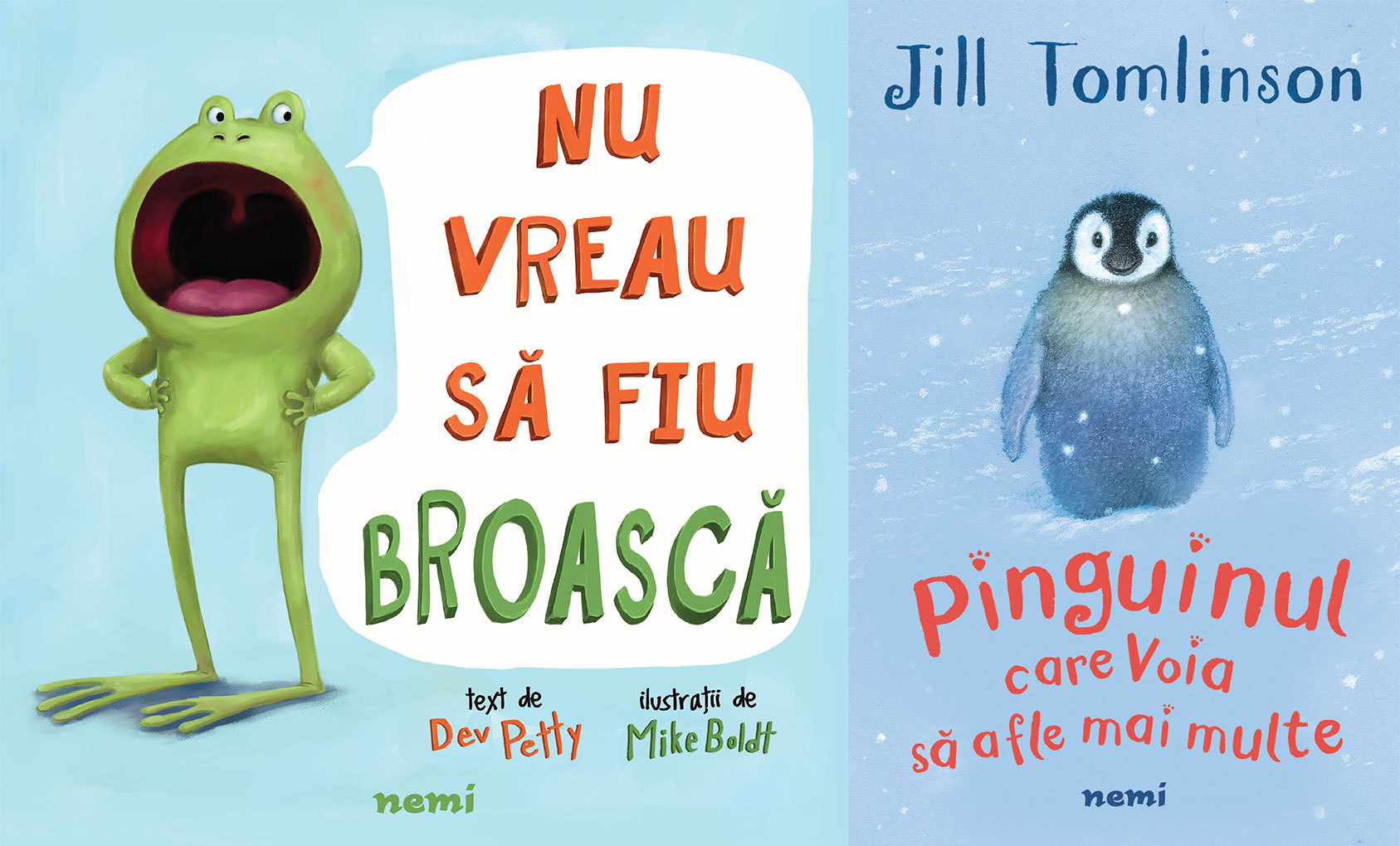 Nu vreau sa fiu broască, de Dev Petty, Mike Boldt; Pinguinul care voia să afle mai multe, de Jill Tomlinson.