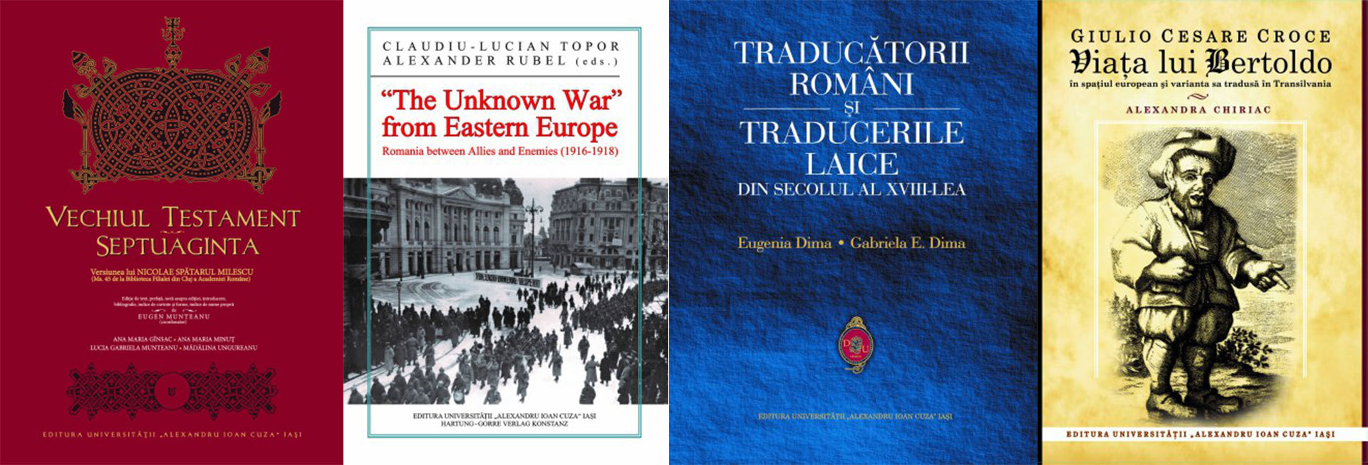 Vechiul Testament – Septuaginta. Versiunea lui Nicolae Spătarul Milescu (Ms. 45 de la Biblioteca Filialei din Cluj a Academiei Române), coord. Eugen Munteanu; „The Unknown War” from Eastern Europe: Romania between Allies and Enemies (1916-1918), ed. Claudiu-Lucian Topor, Alexander Rubel; Traducătorii români și traducerile laice din secolul al XVIII-lea, de Eugenia Dima, Gabriela E. Dima; Giulio Cesare Croce, Viaţa lui Bertoldo în spaţiul european şi varianta sa tradusă în Transilvania, de Alexandra Chiriac.