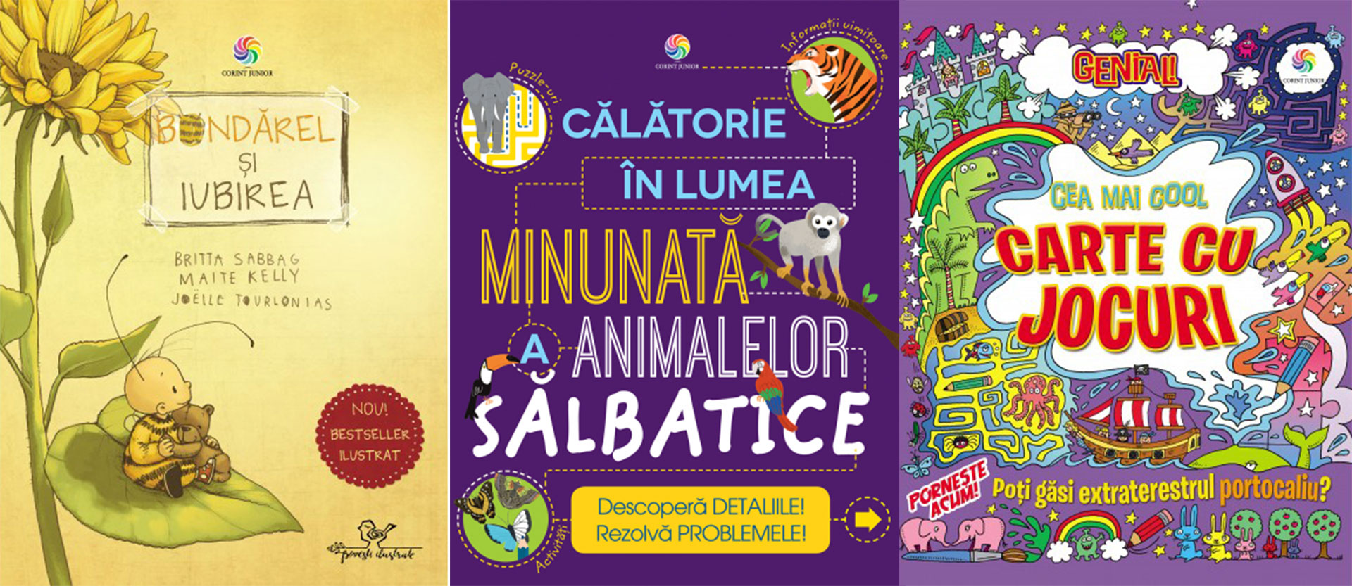 Bondărel și iubirea, de Britta Sabbag, Maite Kelly, Joelle Tourlonias; Călătorie în lumea minunată a animalelor sălbatice, de Steve Parker; Genial! Cea mai cool carte cu jocuri, de Lisa Regan.