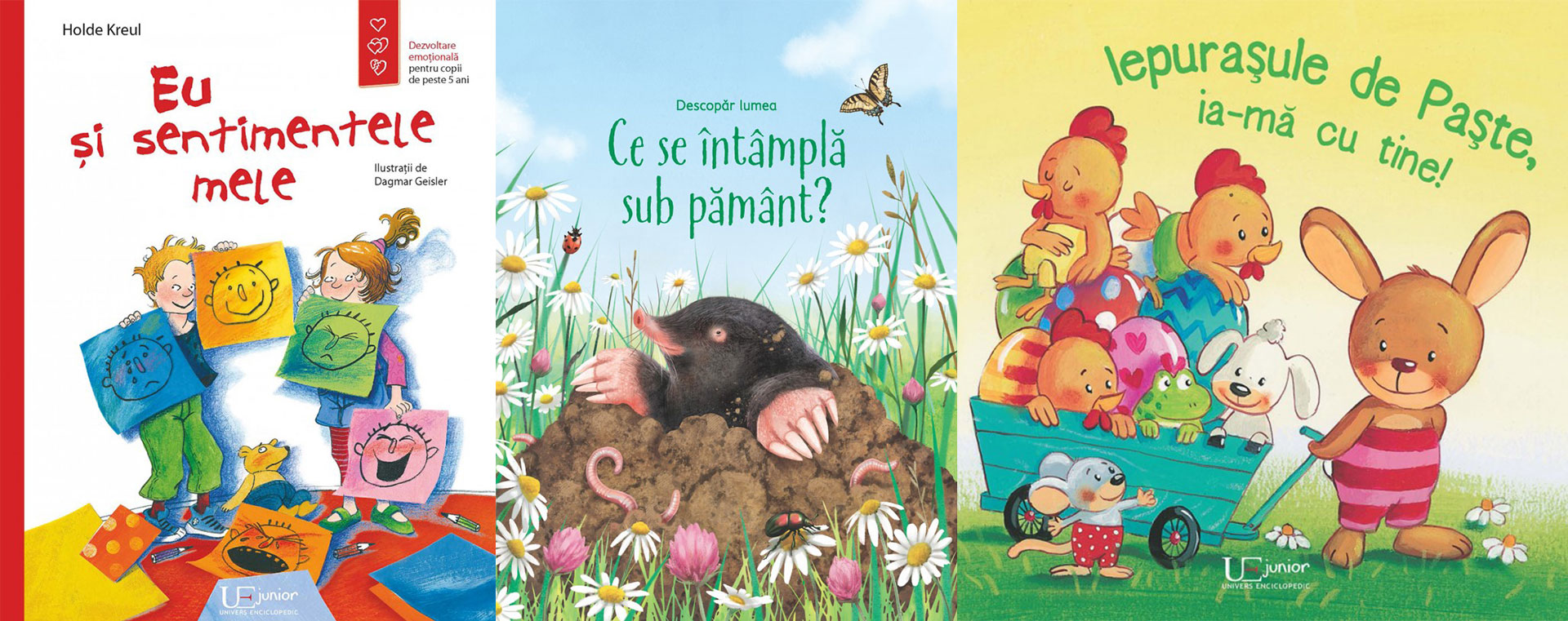 Eu și sentimentele mele, de Holde Kreul; Ce se întâmplă sub pământ?, ed. Usborne; Iepurașule de Paște, ia-mă cu tine!, de Maria Höck, Sabine Kraushaar; Povești drăgălașe de Paște, de Sabine Cuno, Michaela Heitmann; 10 iepuraşi de Paşte, de Hans Christian Schmidt, Marina Rachner; Mimo în Țara Iepurașilor de Paște, de Annette Moser, Marina Krämer; Unde ești, iepurașule de Paște?, de Maria Höck, Sabine Kraushaar.
