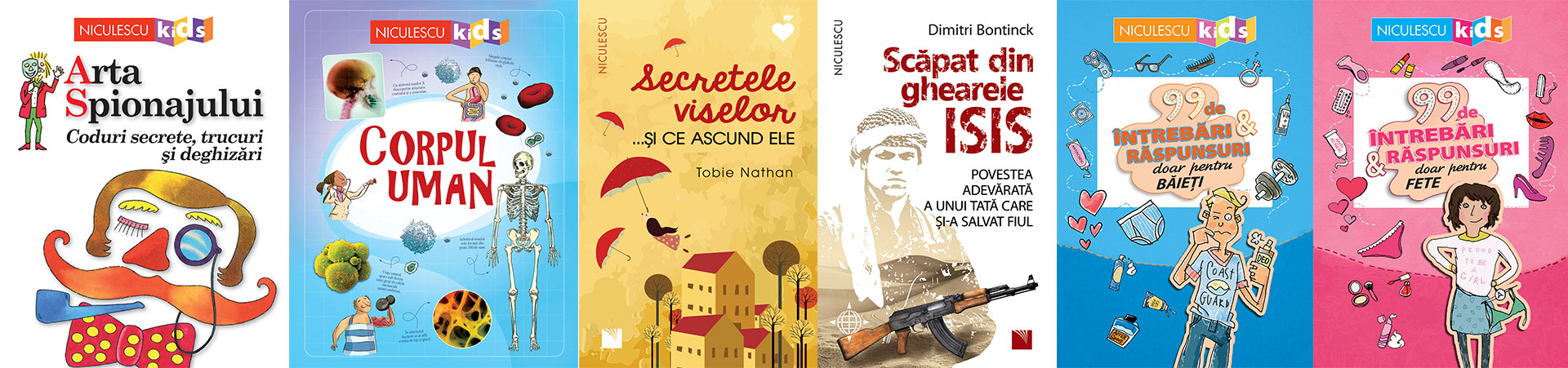 Arta Spionajului. Coduri secrete, trucuri și deghizări, de Falcon Travis, Judy Hindley; Corpul uman, de Alex Frith; Secretele viselor... și ce ascund ele, de Tobie Nathan; Scăpat din ghearele ISIS. Povestea adevărată a unui tată care și-a salvat fiul, de Dimitri Bontinck; 99 de întrebări şi răspunsuri doar pentru băieţi, de Sabine Thor-Wiedemann; 99 de întrebări şi răspunsuri doar pentru fete, de Sabine Thor-Wiedemann.
