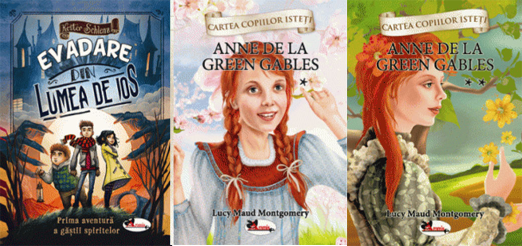 Evadare din lumea de jos, de Kester Schlenz; Anne de la Green Gables, vol. 1, de Lucy Maud Montgomery; Anne de la Green Gables, vol. 2, de Lucy Maud Montgomery.