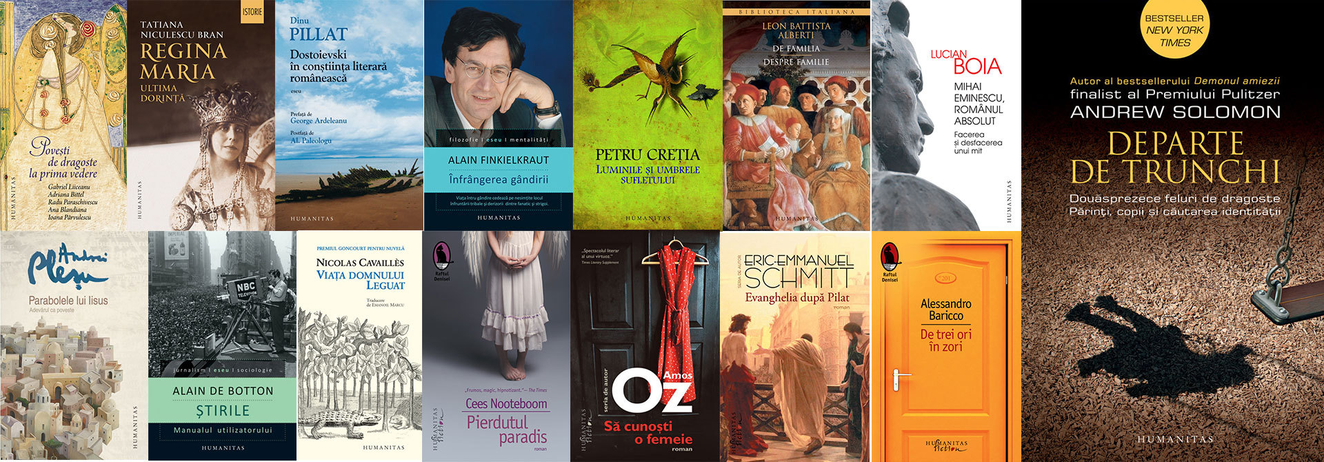 HUMANITAS – Povești de dragoste la prima vedere, de Ioana Pârvulescu, Radu Paraschivescu, Gabriel Liiceanu, Ana Blandiana, Adriana Bittel; Regina Maria. Ultima dorință, de Tatiana Niculescu Bran; Dostoievski în conștiinţa literară românească, de Dinu Pillat; Înfrângerea gândirii, de Alain Finkielkraut; Luminile şi umbrele sufletului, de Petru Creţia; De familia/Despre familie, de Leon Battista Alberti; Mihai Eminescu, românul absolut. Facerea și desfacerea unui mit, de Lucian Boia; Parabolele lui Iisus. Adevărul ca poveste, de Andrei Pleşu; Departe de trunchi. Douăsprezece feluri de dragoste. Părinți, copii și căutarea identității, de Andrew Solomon; Știrile. Manualul utilizatorului, de Alain de Botton; Viața domnului Leguat, de Nicolas Cavaillès; Pierdutul paradis, de Cees Nooteboom; Să cunoști o femeie, de Amos Oz; Evanghelia după Pilat, de Eric-Emmanuel Schmitt; De trei ori în zori, de Alessandro Baricco.
