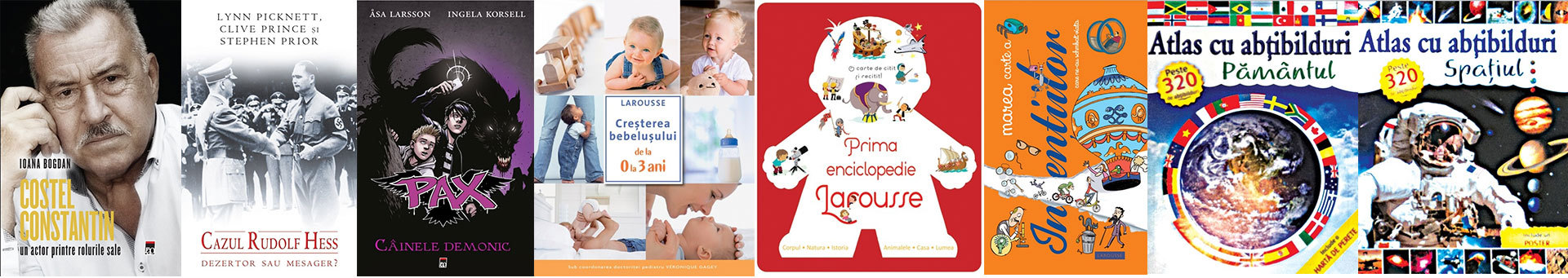 RAO – Costel Constantin, un actor printre rolurile sale, de Ioana Bogdan; Cazul Rudolf Hess. Dezertor sau mesager?, de Lynn Picknett, Clive Prince, Stephen Prio; Pax: Câinele demonic, de Åsa Larsson; Creșterea bebelușului de la 0 la 3 ani, ed. Larousse; Prima enciclopedie Larousse, ed. Larousse; Marea carte a invențiilor care ne-au schimbat viața, ed. Larousse; Atlas cu abțibilduri: Pământul, de Katie Hewat; Atlas cu abțibilduri: Spațiul, de Sofija Stefanovic.