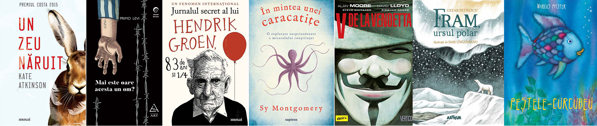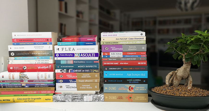 Un zeu năruit, de Kate Atkinson; Mai este oare acesta un om?, de Primo Levi; Jurnalul secret al lui Hendrik Groen, 83 de ani şi ¼, de Hendrik Groen; Scandalul, de Fredrik Backman; Unul dintre noi, de Åsne Seierstad; Dicționar de idei primite de-a gata, de Gustave Flaubert; Crocodilul, de F.M. Dostoievski; În mintea unei caracatițe: o explorare surprinzătoare a miracolului conştiinței, de Sy Montgomery; V de la Vendetta, de Alan Moore, David Lloyd; Watchmen, de Alan Moore, Dave Gibbons; HoARTiu Mălăele, de Horațiu Mălăele; Kaștanka, de A.P. Cehov; Iubiri dificile, de Italo Calvino; Iubirea care a rupt lumea în două, de Emily Henry; Fangirl, de Rainbow Rowell; Denton Little are întâlnire cu Moartea, de Lance Rubin; Cum să spânzuri o vrăjitoare, de Adriana Mather; Cronicile din Narnia VII. Ultima bătălie, de C.S. Lewis; Fram, ursul polar, de Cezar Petrescu; Rostogol și vulcanii noroioși, de Lavinia Braniște; Cei trei măgăruși și cartea fermecată, de Gabriel H. Decuble; Cea mai rea prinţesă, de Anna Kemp; Sir Nufărel, de Anna Kemp; Peppa. Zâna Măseluţă; Primii ochelari ai Peppei; Cartea fără poze, de B.J. Novak; Nara și insula, de Dan Ungureanu; Peștele-curcubeu, de Marcus Pfister.