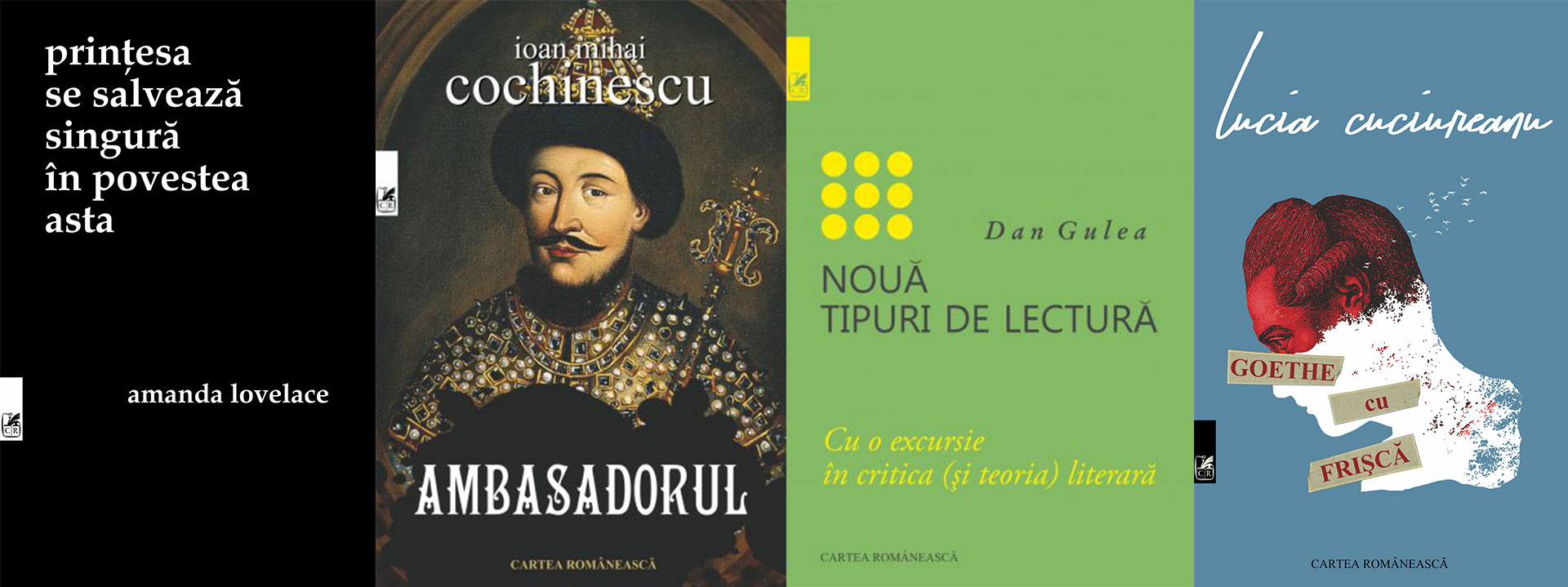 Prințesa se salvează singură în povestea asta, de Amanda Lovelace; Locuri blînde pentru Aura, de Horea Poenar; Ambasadorul, de Ioan Mihai Cochinescu; Nouă tipuri de lectură. Cu o excursie în critica (și teoria) literară, de Dan Gulea; Goethe cu frişcă, de Lucia Cuciureanu.