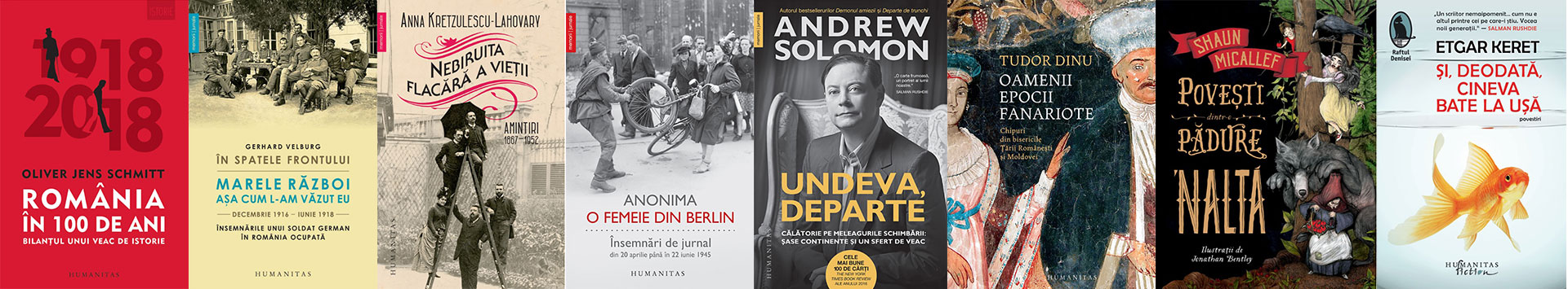 România în 100 de ani. Bilanțul unui veac de istorie, de Oliver Jens Schmitt; Matrioșka mincinoșilor. Fake news, manipulare, populism, de Marian Voicu; În spatele frontului. Marele Război așa cum l-am văzut eu, decembrie 1916–iunie 1918. Însemnările unui soldat german în România ocupată, de Gerhard Velburg; Bărbatul care aduce fericirea, de Cătălin Dorian Florescu; Nebiruita flacără a vieţii. Amintiri, 1867–1952, de Anna Kretzulescu-Lahovary; Vin rușii! 5 perspective asupra unei vecinătăți primejdioase, de Marian Voicu, Ioan Stanomir, Valentin Naumescu, Sabina Fati, Vitalie Ciobanu; Cartea Filocaliilor. Cele mai frumoase pagini; O femeie din Berlin. Însemnări de jurnal din 20 aprilie până în 22 iunie 1945, Anonim; Contextul. O parodie, de Leonardo Sciascia; Undeva, departe, de Andrew Solomon; Oamenii epocii fanariote. Chipuri din bisericile Țării Românești și Moldovei, de Tudor Dinu; Confesiuni. Ediție bilingvă, de Sf. Augustin; O privire filozofică (așa-numitul „Caiet brun“), de Ludwig Wittgenstein; Povești dintr-o pădure 'naltă, de Shaun Micallef; Și, deodată, cineva bate la ușă, de Etgar Keret; Wabi-Sabi, de Francesc Miralles; Frumoasele adormite, de Yasunari Kawabata; Alchimistul. Ediție aniversară, 30 de ani, de Paulo Coelho; O scurtă istorie a românilor povestită celor tineri. 10 lecții de istorie, de Neagu Djuvara.