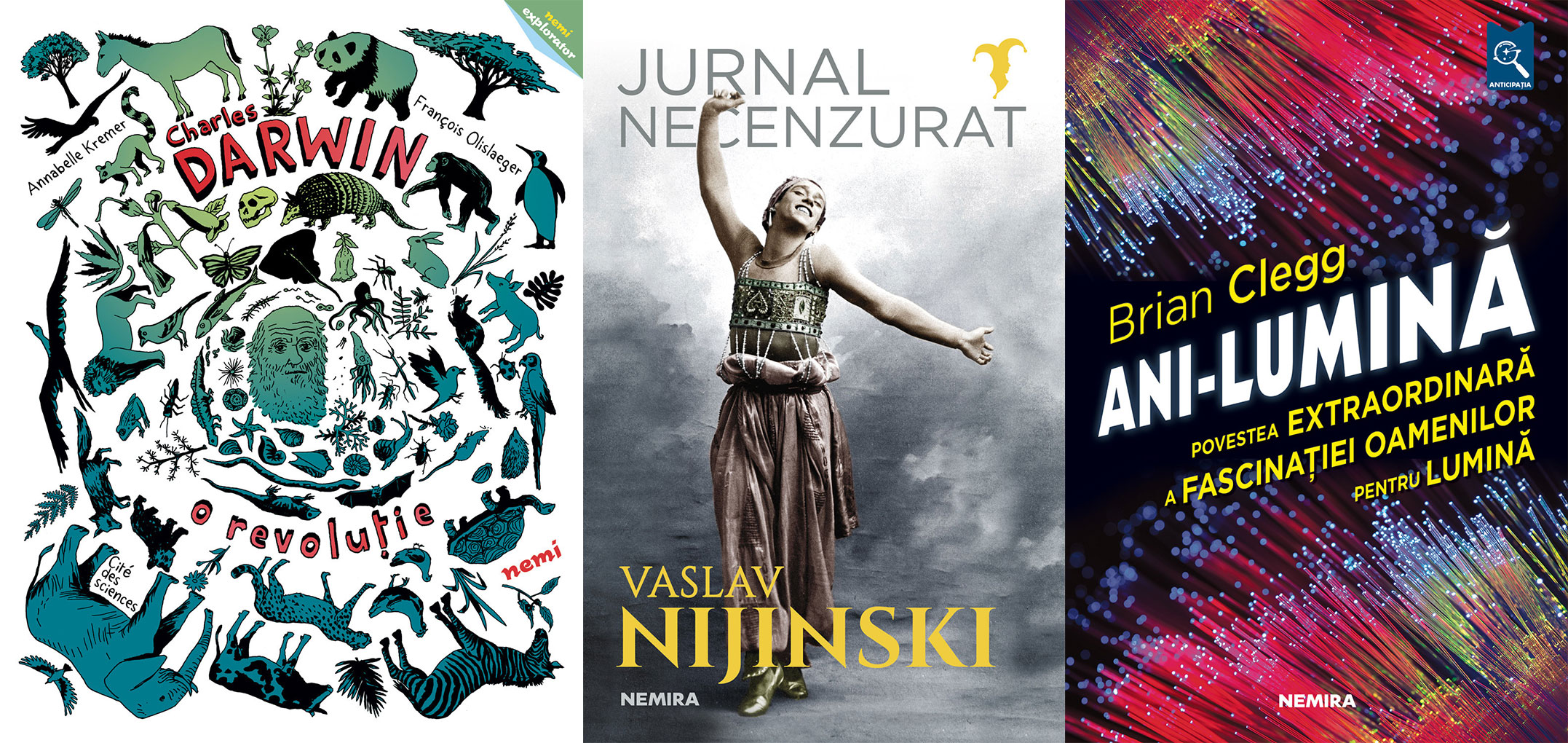 Charles Darwin, o revoluție, de Annabelle Kremer, il. François Olislaeger; Jurnal necenzurat, de Vaslav Nijinski; Ani-lumină, de Brian Clegg; Iisușii mei, de George Banu.