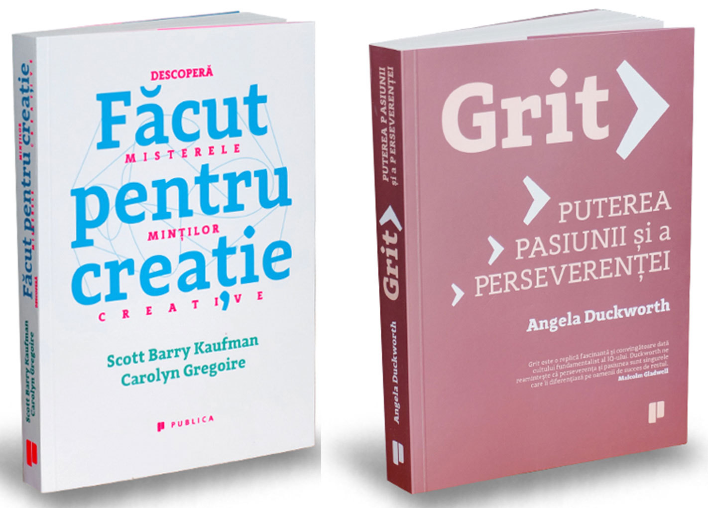 Făcut pentru creaţie. Descoperă misterele minţilor creative, de Carolyn Gregoire și Scott Barry Kaufman; Grit. Puterea pasiunii şi a perseverenţei, de Angela Duckworth.