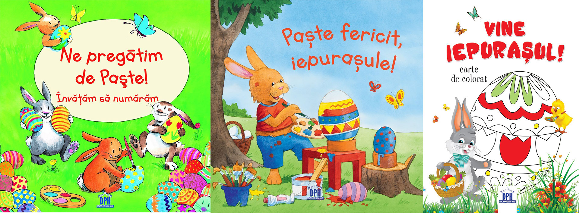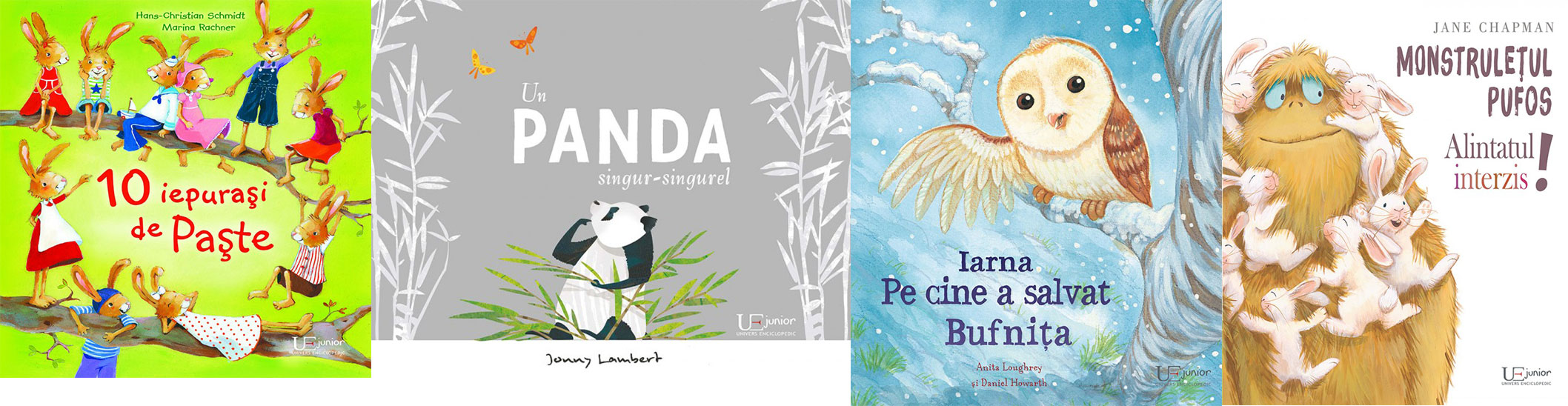 10 iepuraşi de Paşte, de Hans Christian Schmidt, Marina Rachner; Un Panda singur-singurel, de Jonny Lambert; Iarna. Pe cine a salvat Bufnița, de Anita Loughrey, Daniel Howarth; Monstrulețul pufos. Alintatul interzis!, de Jane Chapman.