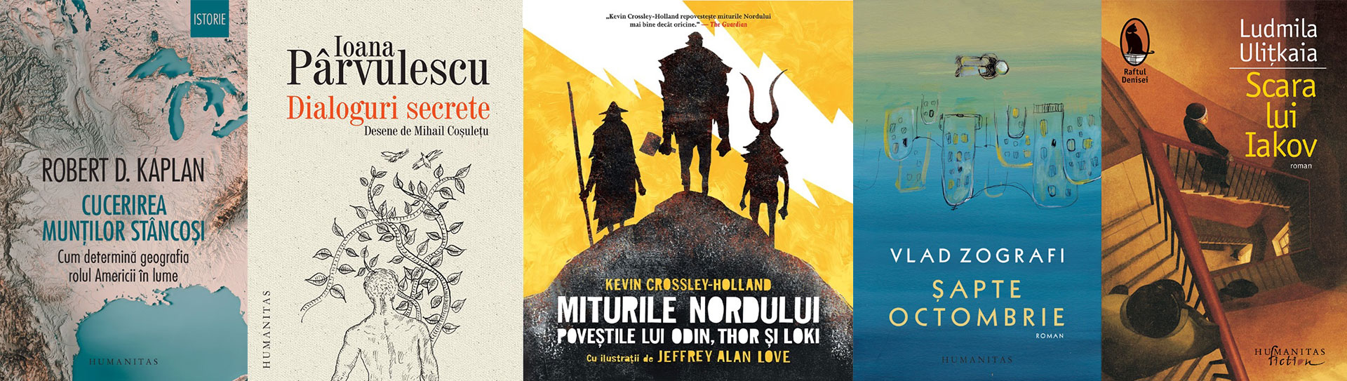 Cucerirea Munților Stâncoși. Cum determină geografia rolul Americii în lume, de Robert D. Kaplan; Dialoguri secrete. Cum se roagă scriitorii și personajele lor, de Ioana Pârvulescu; Variațiuni pe o temă dată, de Ana Blandiana; Galen și începuturile medicinei. Cu desenele autoarei, de Jeanne Bendick; Miturile Nordului. Poveștile lui Odin, Thor și Loki, de Kevin Crossley-Holland; Șapte Octombrie, de Vlad Zografi; Pe mâna cui suntem? Mică antologie a tragicomediei româneşti, de Andrei Pleşu; Orice om îi este teamă. Un partid, doi ani și trei premieri, de Radu Paraschivescu; Așteptând o altă omenire, de Gabriel Liiceanu; Dragi fanatici. Trei eseuri, de Amos Oz; Scara lui Iakov, de Ludmila Uliţkaia.