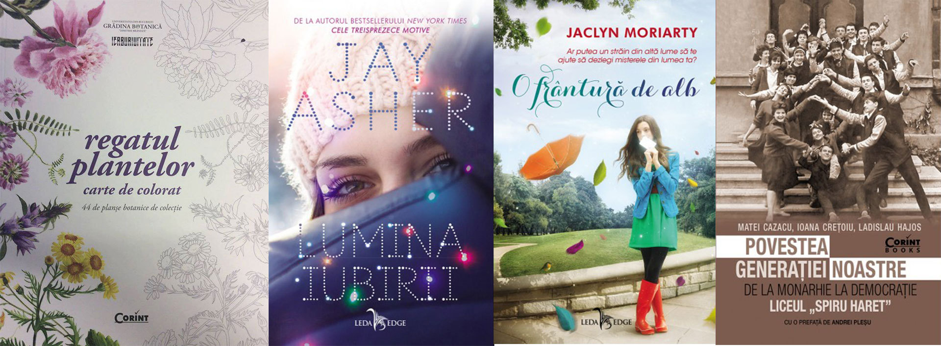 Regatul plantelor, ed. Ierburi Uitate; Lumina iubirii, de Jay Asher; O frântură de alb (vol.1 din Culorile lui Madeleine), de Jaclyn Moriarty; Povestea generației noastre. De la monarhie la democrație, de Matei Cazacu, Ioana Crețoiu, Ladislau Hajos.