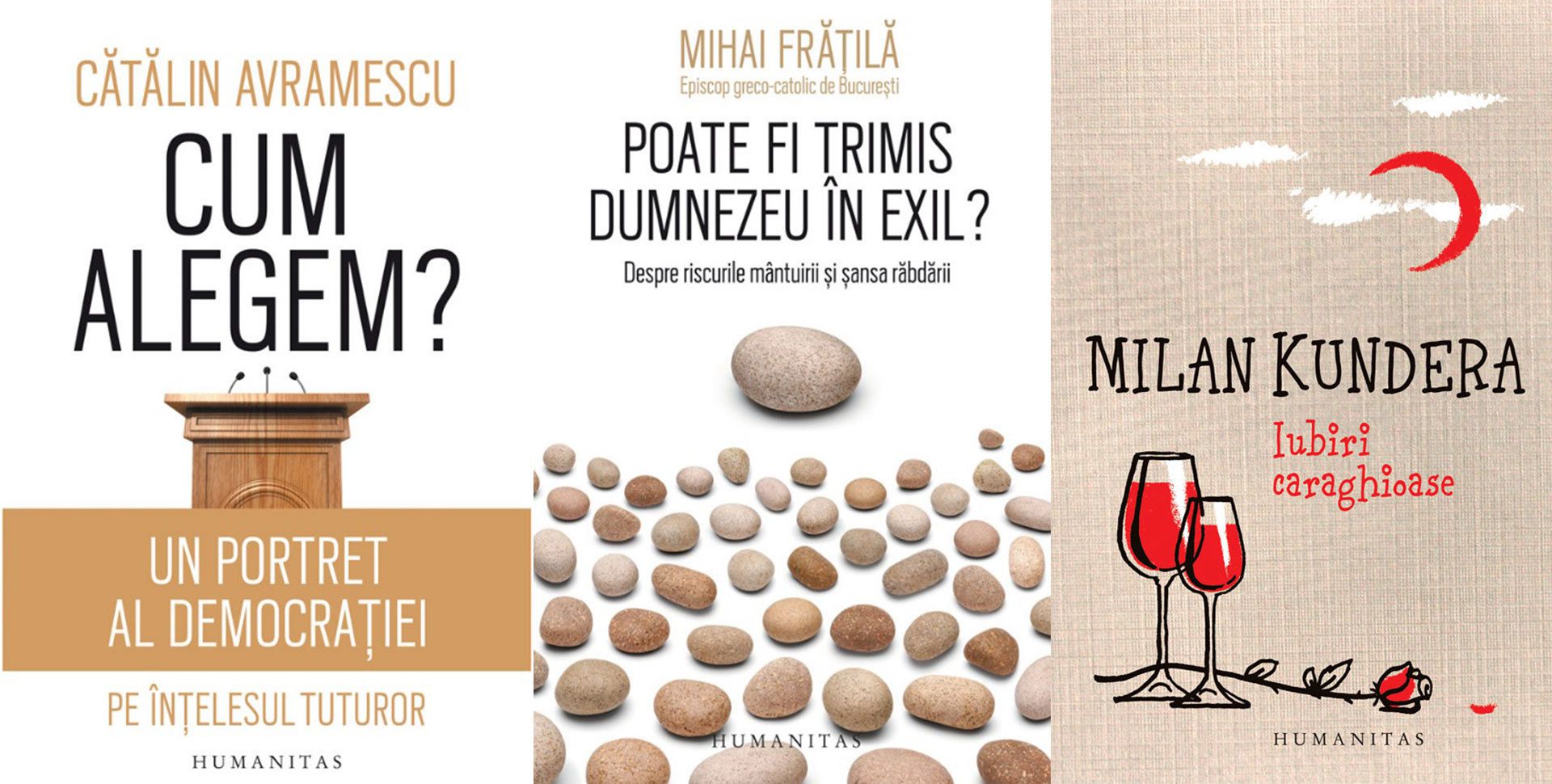 Cum alegem? Un portret al democrației pe înțelesul tuturor, de Cătălin Avramescu; Poate fi trimis Dumnezeu în exil? Despre riscurile mântuirii și șansa răbdării, de Mihai Frățilă; Iubiri caraghioase, de Milan Kundera.