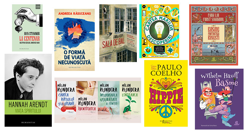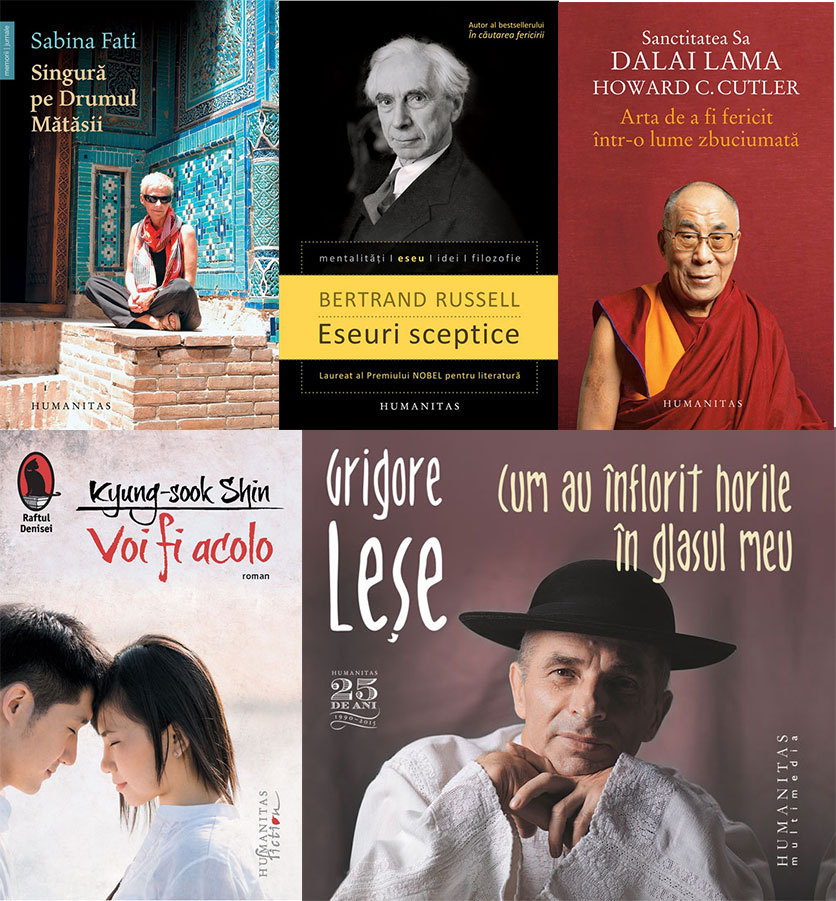 HUMANITAS – Singură pe Drumul Mătăsii. 80 de zile, 15 000 km, 2 500 de ani de istorie, Sabina Fati; Eseuri sceptice, de Bertrand Russell; Arta de a fi fericit într-o lume zbuciumată, de Dalai Lama, Howard C. Cutler; Voi fi acolo, de Kyung-sook Shin; Cum au înflorit horile în glasul meu, de Grigore Leşe.