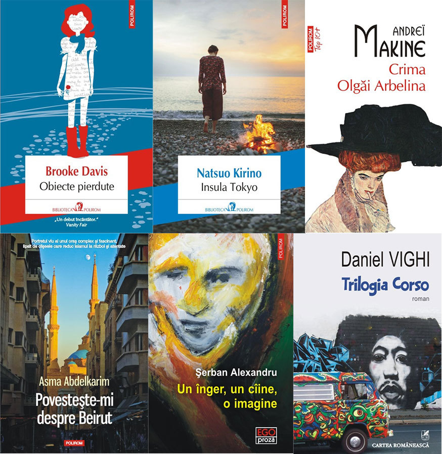 POLIROM – Obiecte pierdute, de Brooke Davis; Insula Tokyo, de Natsuo Kirino; Crima Olgăi Arbelina, de Andreï Makine; Povestește-mi despre Beirut, de Asma Abdelkarim; Un înger, un câine, o imagine, de Șerban Alexandru; Trilogia Corso, de Daniel Vighi.