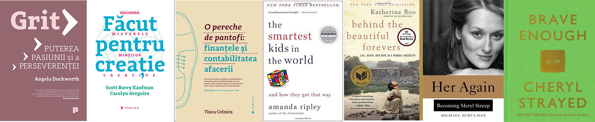• Grit. Puterea pasiunii și a perseverenței. Pornind de la propria poveste – aceea de fiică a unui om de ştiinţă care îi deplângea frecvent lipsa de „geniu” – Angela Duckworth descrie dificultăţile de care s-a lovit de-a lungul carierei sale și care au condus-o spre ipoteza că secretul realizărilor excepționale nu este, de fapt, talentul, ci o combinaţie unică de pasiune şi perseverenţă pe care ea o numește grit. De ceva timp, și acum, e number 1 nonfiction bestseller NYT.