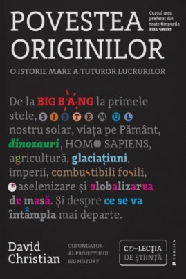 Povestea originilor. O istorie mare a tuturor lucrurilor, de David Christian (Origin Story. A Big History of Everything, 2018), are pe coperta față un text scurt și cuprinzător despre ce veți găsi în paginile ei: „de la Big Bang la primele stele, sistemul nostru solar, viața pe Pământ, dinozauri, homo sapiens, agricultură, glaciațiuni, imperii, combustibili fosili, o aselenizare și globalizarea de masă. Și despre ce se va întâmpla mai departe”. Și fix despre asta e vorba în cele puțin peste 400 de pagini (are mai multe, dar restul sunt texte adiționale). O istorie a întregii lumi în 400 de pagini. Nu-i rău, nu? All in one, cum se zice în reclame. În plus, este scrisă foarte frumos și accesibil. Pentru omul modern, interesat de lumea în care trăiește, cred că asta este introducerea perfectă. Eu nu am găsit alta mai simplă, mai cuprinzătoare și mai accesibilă (până acum).