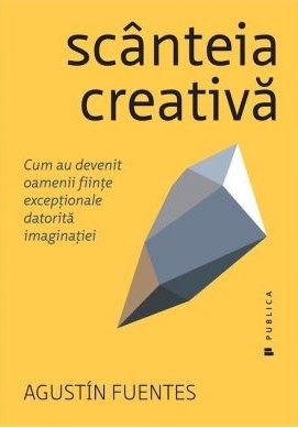 Scânteia creativă. Cum au devenit oamenii ființe excepționale datorită imaginației, de Agustín Fuentes (The Creative Spark: How Imagination Made Humans Exceptional Hardcover, 2017). După cum îi spune și titlul, aceasta este o istorie a evoluției umane care evidențiază rolul creativității și felul special în care creierul uman s-a dezvoltat pentru inovație. Autorul trece în revistă principalele inovații umane, de la elaborarea celor mai simple unelte până la inventarea poveștilor („arta povestitului reprezintă cea mai specială artă umană”), poveștiile fiind, la nivel profund, nu doar un entertainment, ci modul prin care oamenii navighează prin lume; creierul nostru este programat să înțeleagă lumea prin intermediul poveștilor și sub formă de poveste.