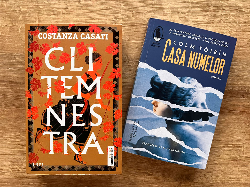 Cele mai recente două astfel de romane pe care le-am citit au avut în centru figura Clitemnestrei, soția „marelui” Agamemnon, cel care a sacrificat-o pe fiica lor, Ifigenia, pe altarul unui război stupid (ca toate războaiele, de altfel), crimă pe care ea nu i-a iertat-o niciodată. Este vorba despre Clitemnestra, de Constanza Casati (trad. Laura Karsch), și Casa numelor, de Colm Tóibín (trad. Mihnea Gafița), ambele apărute în traducere română anul trecut.