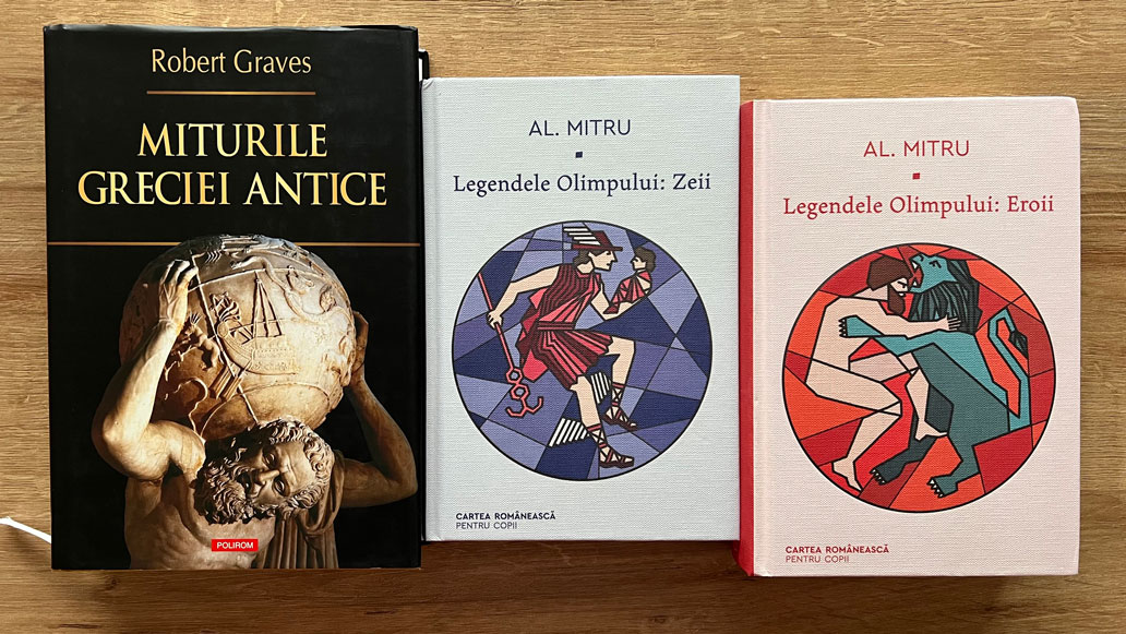 Pentru cine dorește să înceapă de la „origini”, o poate face cu cele două volume ale lui Alexandru Mitru care au fost fundamentale în copilăria multora dintre noi, și recent au fost reeditate, Legendele Olimpului. Zeii și Legendele Olimpului. Eroii, sau, și mai bine, cu cele două epopei atribuite lui Homer și care au ediții de colecție la Editura Humanitas, Iliada și Odysseia (în traducerea nouă a lui Dan Slușanschi) sau ediții grafice la Humanitas Junior pentru tinerii cititori: Iliada. Roman grafic și Odiseea. Roman grafic, ambele semnate de Gareth Hinds (trad. Andrei Pogăciaș).