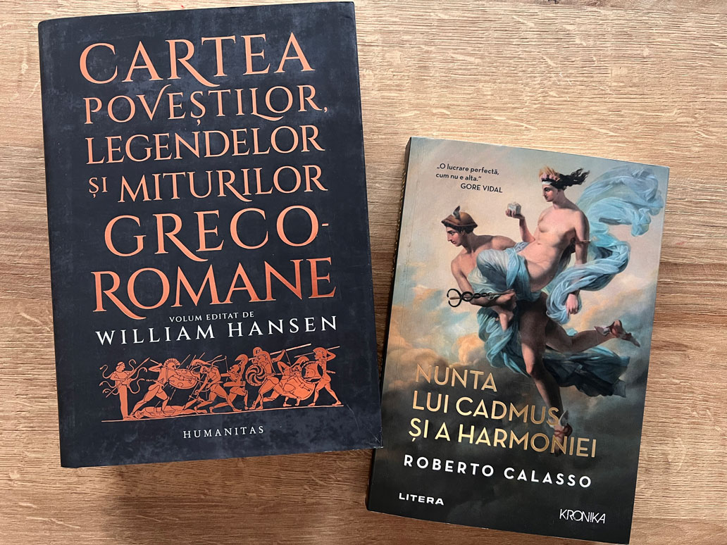 Dacă ați ajuns aici și ați epuizat lista volumelor de popularizare, închei enumerarea cu două volume de referință, Cartea poveștilor, legendelor și miturilor greco-romane, de William Hansen (Humanitas, 2022, trad. Anca Bărbulescu) și Nunta lui Cadmus și a Harmoniei, volumul marelui clasicist italian Roberto Calasso (Ed. Litera, 2022, trad. Petru Iamandi).
