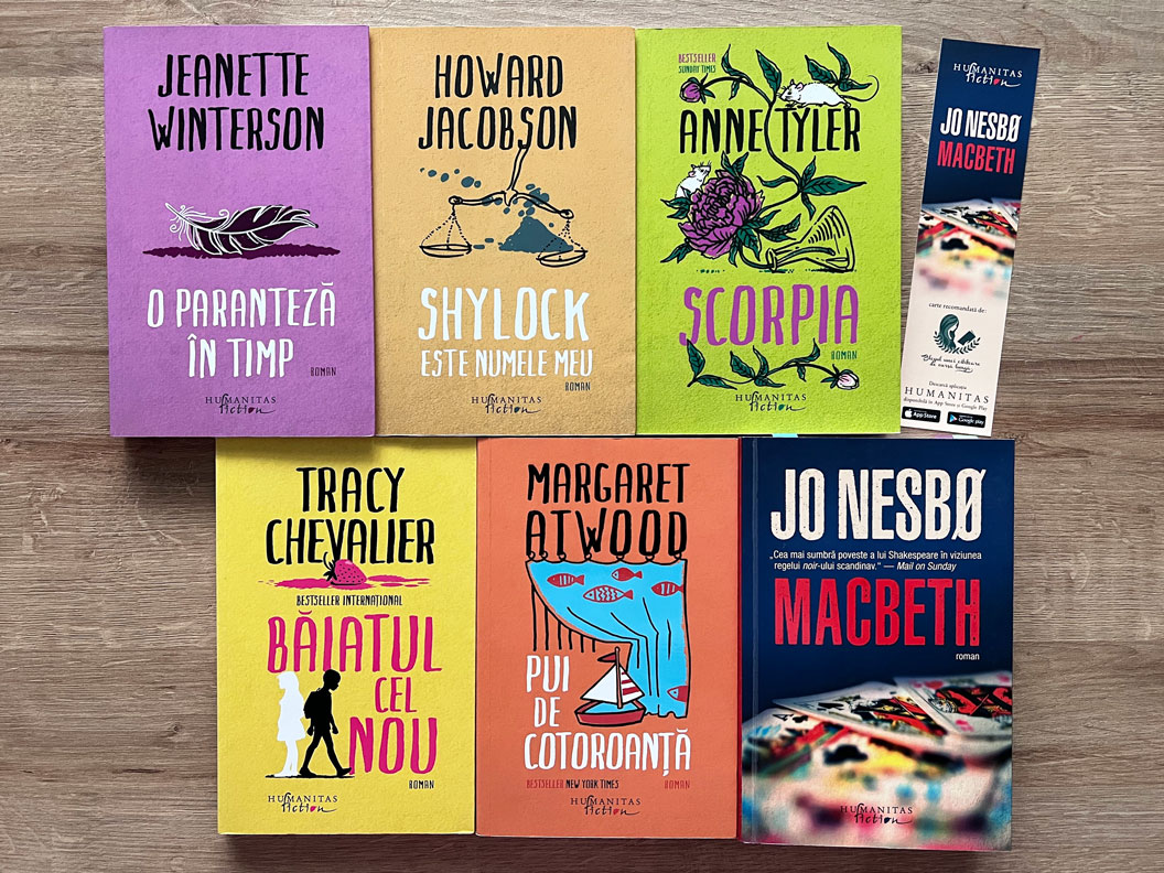 Și, tot referitor la moștenirea artistică a lui Shakespeare, în 2015 (la comemorarea de 400 de ani de la moartea lui Will) editura Hogarth din Marea Britanie a inițiat un proiect care urmărea reinterpretarea capodoperelor lui Shakespeare de către scriitori contemporani. Proiectul a fost preluat și la noi de Humanitas Fiction și au apărut până acum șapte romane (dintre care șase traduse și în română), The Gap of Time, de Jeanette Winterson, după Poveste de iarnă (trad. rom. O paranteză în timp), Shylock Is My Name, de Howard Jacobson, după Neguțătorul din Veneția (trad. rom. Shylock este numele meu), Vinegar Girl, de Anne Tyler, după Îmblânzirea scorpiei (trad. rom. Scorpia), Hag-Seed, de Margaret Atwood, după Furtuna (trad. rom. Pui de cotoroanță), New Boy, de Tracy Chevalier după Othello (trad. rom. Băiatul cel nou), Dunbar, de Edward St Aubyn după Regele Lear), Macbeth, de Jo Nesbø după, evident, Macbeth (trad. rom. Macbeth) și ar mai trebui să apară o reinterpretare după Hamlet făcută de Gillian Flynn. Un roman care ar fi putut foarte bine să facă parte din seria asta, dar nu face (gurile rele spun că autorul a refuzat colaborarea) este Coajă de nucă, de Ian McEwan, o rescriere originală și surprinzătoare a lui Hamlet. Mie mi-au plăcut enorm toate aceste reinterpretări, fiecare este, în felul său particular, personală și inedită, un omagiu adus atât lui Shakespeare, cât și publicului său. Din păcate, cred că seria nu a avut succesul scontat de inițiatorii săi, ultimul volum apărut fiind Macbeth în 2019, de atunci nu am mai citit nimic despre următoarea carte care era la rând (Hamlet, apud Gillian Flynn) și nici de vreo altă continuare.