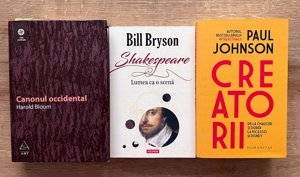 Și mai pe scurt puteți găsi capitole separate despre Shakespeare în Creatorii lui Paul Johnson (o prezentare destul de stufoasă a scrierilor și scriiturii sale), Canonul occidental, de Harold Bloom (care-l pune pe Shakespeare, alături de Dante, în centrul canonului literar occidental: „Shakespeare este figura centrală a canonului occidental”) sau Titani ai istoriei, de Simon Sebag Montefiore. Pentru cine are chef de despicat firul în patru, seria „Idei esențiale” are un volum care-i este dedicat în totalitate, The Shakespeare Book (evident, doar în engleză, nu știu dacă putem spera la o asemenea traducere).
