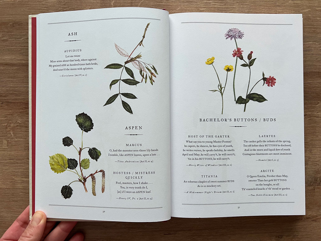 În mica mea bibliotecă #fanShakespeare se mai află două ediții pe care le-am luat mai mult de „amoru' artei”. Prima este o carte splendid ilustrată, Botanical Shakespeare. An Illustrated Compendium of All the Flowers, Fruits, Herbs, Trees, Seeds, and Grasses Cited by the World's Greatest Playwright, de Gerit Quealy, cu ilustrații de Sumie Hasegawa Collins. Este o antologie care adună toate citatele din opera lui Shakespeare care au legătură cu ceva din lumea plantelor (fructe, flori, ierburi etc.) pe care le acompaniază cu splendide ilustrații vegetale. Un volum de colecție, în spatele căruia se află o muncă enormă (documentare, organizare, concepție grafică, realizare) și care este o bucurie pentru ochi și minte deopotrivă.