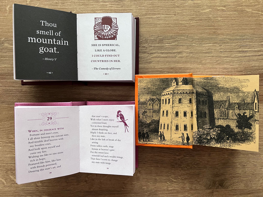 Cea de-a doua ediție este un set de 3 cărți minuscule (7,6x8,9 cm), Shakespeare box set, format din: „The complete plays in one sitting”, „The bard's guide to abuses and affronts” și „Love sonnets of Shakespeare”. Toate au ilustrații color și sunt printate pe hârtie colorată, cu aspect vintage, plus tot felul de chenare și vignete care contribuie la înfrumusețarea aspectului. De asemenea, fiecare are o scurtă introducere în opera lui Shakespeare și tot felul de informații utile. Sunt niște cărticele simpatice, atent lucrate și mai serioase decât te-ai aștepta având în vedere dimensiunea lor.