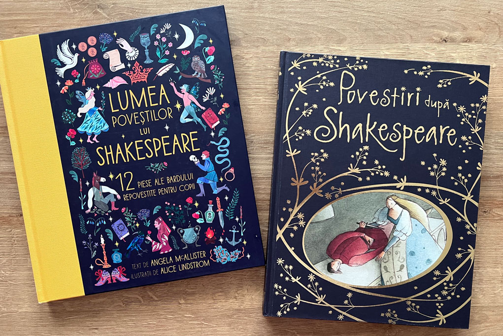 Extrem de cunoscute sunt și povestirile după piesele lui Shakespeare făcute de frații Charles și Mary Lamb în 1807 și care de atunci au cunoscut ediții succesive atât în engleză, cât și în traduceri în alte limbi ale lumii. Tot la categoria repovestiri mai intră și alte două volume ilustrate, apărute și în traducere română, ambele ediții cartonate și ilustrate, Povestiri după Shakespeare, de Anna Claybourne (adaptare) și Elena Temporin (ilustrații), și Lumea poveștilor lui Shakespeare. 12 piese ale bardului repovestite pentru copii, de Angela McAllister (text) și Alice Lindstrom (ilustrații). Teoretic, pentru copii, prin concepție grafică ele sunt o bucurie și pentru cititorul adult (eu le-am cumpărat în primul rând pentru mine).