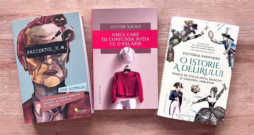 Și, dacă tot am ajuns „de la bal la spital”, nu pot să nu menționez recenta reeditare a operei fundamentale a lui Michel Foucault, Istoria nebuniei în epoca clasică (pusă sub semnul Corabiei nebunilor, stultifera navis), precum și O istorie culturală a nebuniei, de Andrew Scull (recent reeditată și în ediție cartonată). Pacientul H.M. O poveste despre memorie, nebunie și secrete de familie, de Luke Dittrich, prezintă unul dintre cele mai celebre cazuri din istoria psihiatriei, iar volumul recent apărut O istorie a delirului, Regele de sticlă, soțul înlocuit și cadavrul umblător, de Victoria Shepherd, face o remarcabilă sinteză între informațiile referitoare la zece cazuri celebre de tulburări psihice și detaliile istorice ale epocilor respective, reușind să ofere o legătură necesară între felul în care este văzută boala psihică și mentalitatea colectivă dintr-o epocă istorică anume. În plus, nici o astfel de listă nu ar putea fi completă fără menționarea măcar a lui Oliver Sacks. Omul care își confunda soția cu o pălărie este care nu poate fi fi excesiv recomandată.