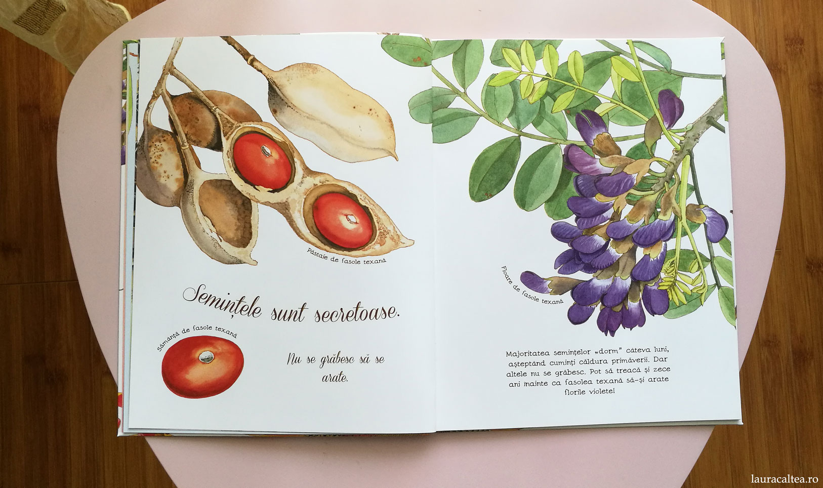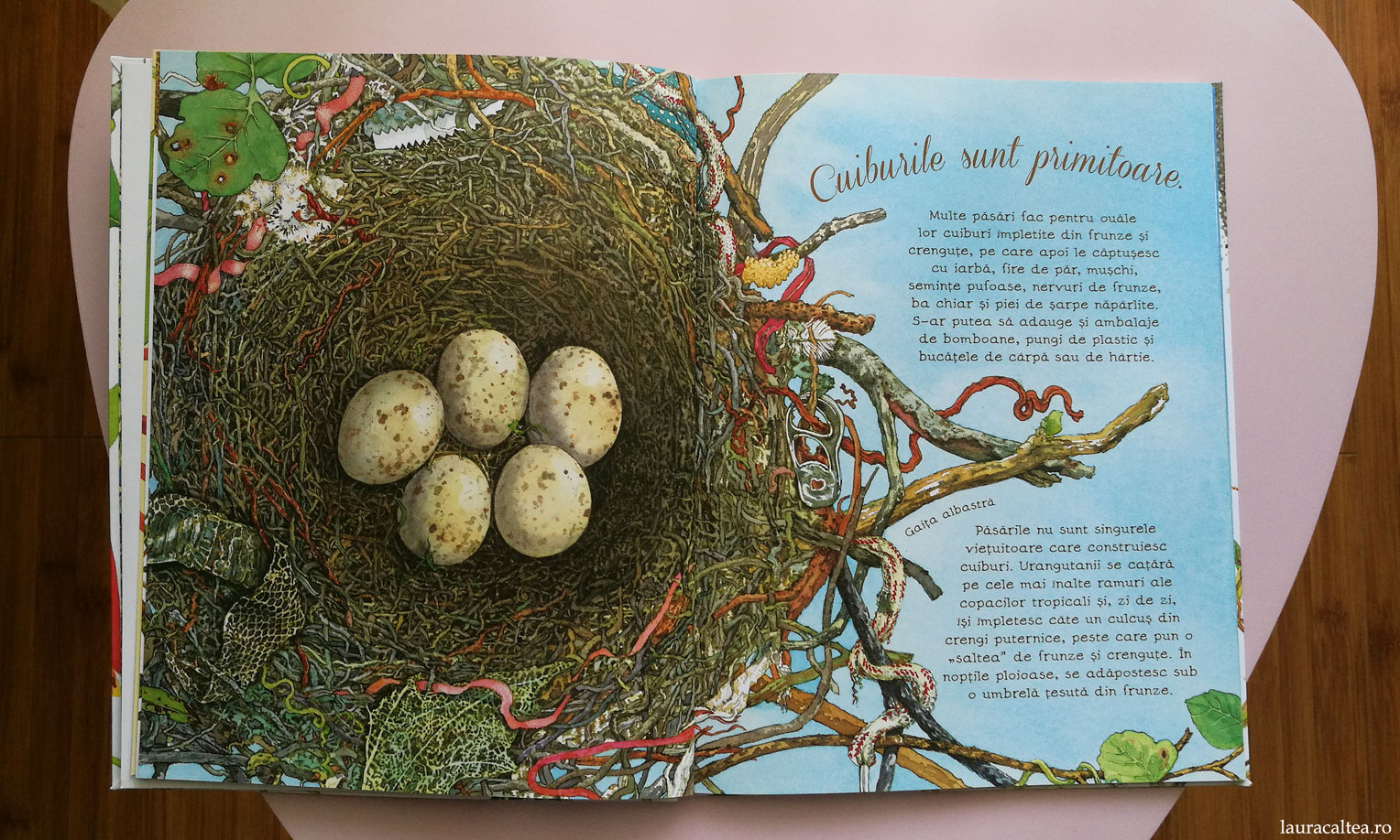 De asemenea, fiecare carte are câte două pagini, la început și la final, unde sunt planșe cu diferitele tipuri de ouă, semințe, pietre, cuiburi, gândaci sau fluturi care dau o privire de ansamblu, dar sunt potrivite și pentru a fi privite îndelung până se întipăresc în minte. Și câte povești nu pot fi țesute pornind de la ele!