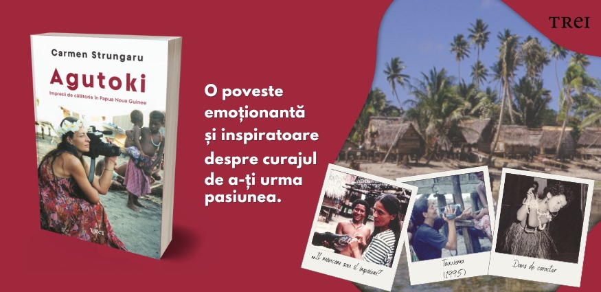 O poveste emoționantă și inspiratoare despre curajul de a-ți urma pasiunea: Agutoki. Impresii de călătorie în Papua Noua Guinee, de Carmen Strungaru (Editura Trei).