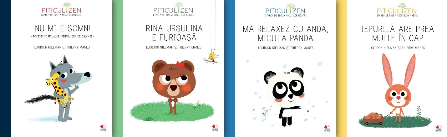 COLECȚIA MICUL ZEN: Motoraș, un iepuraș fără astâmpăr; Nu mi-e somn!; Mă relaxez cu Anda, micuța Panda!; Rina Ursulina e furioasă