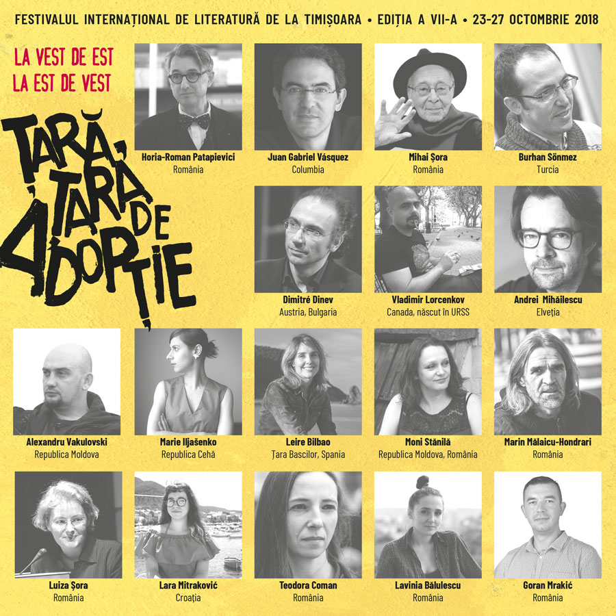 / Cea de a VII-a ediție a Festivalului Internațional de Literatură de la Timișoara: 23-27 octombrie 2018, la Muzeul de Artă (Sala Barocă) și la Galeria Calpe
