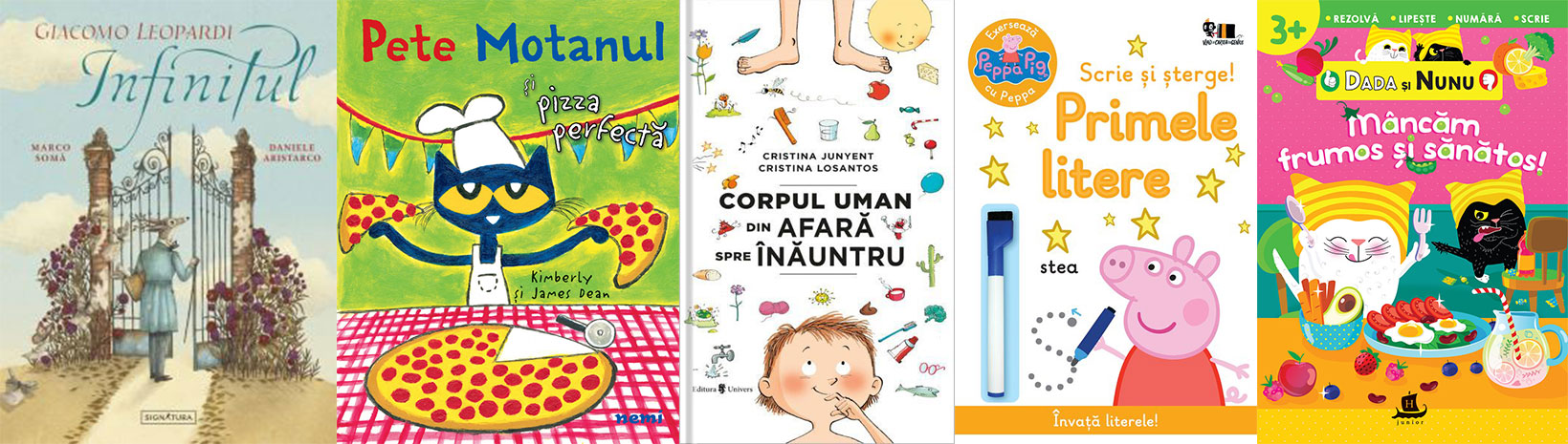 Mai multe continuări ale unor serii de succes: Pete Motanul și vecinul cel nou și Pete Motanul și pizza perfectă, de Kimberly Dean și James Dean Brown, Dar motan călătorește și Dar motan înoată, de Cristina Andone, la Nemi; Primele litere. Scrie și șterge! Exersează cu Peppa și Primele numere. Scrie și șterge! Exersează cu Peppa, din seria Peppa Pig, la Arthur; Poveștile prieteniei, de Cristina și Alex Donovici, la Curtea Veche.
