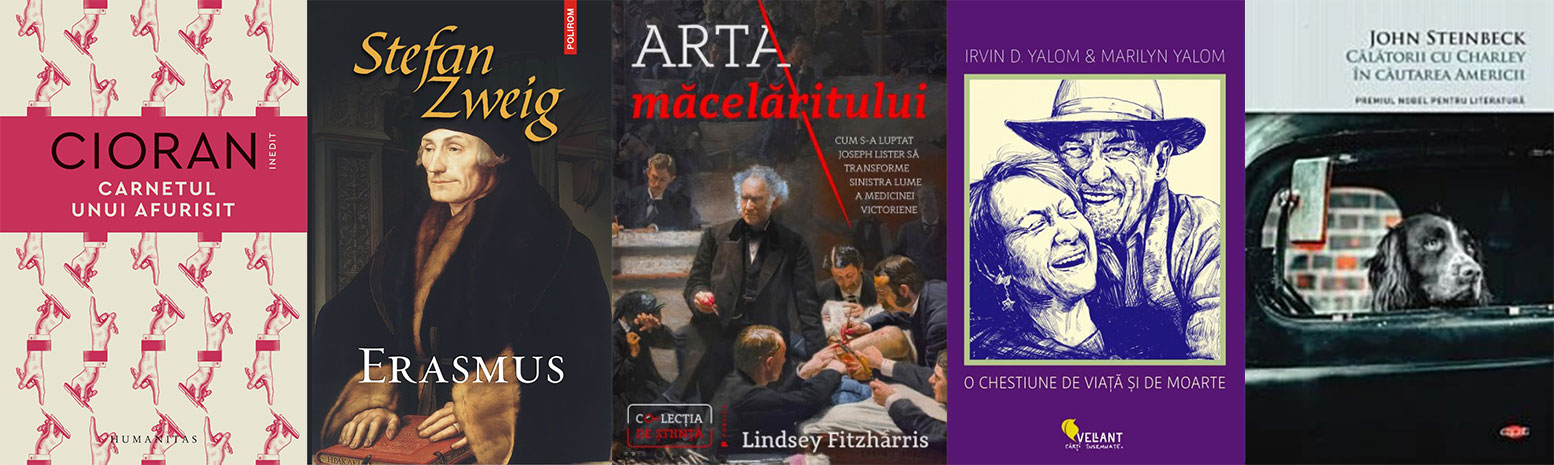 Necesare de multă vreme, în aprilie s-au reeditat mai multe dintre cărțile lui Emil Cioran la Editura Humanitas, în ediții cartonate și cu o grafică cel puțin îndrăzneață (având în vedere stilul autorului). Au apărut, până acum, Razne, Carnetul unui afurisit, Căderea în timp, Exerciții de admirație și Demiurgul cel rău. Tot aici s-a mai reeditat și Jurnalul unei fete greu de mulțumit, de Jeni Acterian, și au mai apărut un volum despre istoria planetei noastre, Călătorie spre centrul Pământului. Extraordinara expediție de explorare științifică în adâncurile lumii noastre, de David Whitehouse, și două volume de istorie contemporană, Balcanii în secolul XX. O istorie postimperială, de Oliver Jens Schmitt și De unul singur. Memoriile unui membru al Gărzilor Roșii, de Fan Shen.