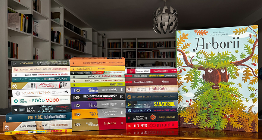 Alte apariții: la ed. Vellant a apărut un volum așteptat cu nerăbdare de cititorii interesați de psihoterapie și nu numai, și anume O chestiune de viață și de moarte, de Irvin D. Yalom și Marilyn Yalom, povestea felului în care cei doi au trecut împreună prin una dintre cele mai grele încercări din viața unui cuplu, boala și moartea, la Trei încă o carte care-și propune să facă matematica mai simpatică (unde erau cărțile astea când aveam nevoie de ele?), Marele roman al matematicii. Din preistorie în zilele noastre, de Mickael Launay, și un volum de eseuri filozofice. Viața bună. O introducere în etică, de Cristian Iftode, la Pilot Books, Stretching pentru orice vârstă, de Jessica Matthews; la Casa o carte pentru un hobby cu poze tot mai multe pe rețelele sociale, Fii brutar în lumea mare. Ocolul Pământului cu 72 de retețe, de Tothne Libor Maria; iar la Curtea Veche Exilul Regelui, de Diana Mandache, și După Dumnezeu. Ghidul ateistului începător, de Richard Dawkins.