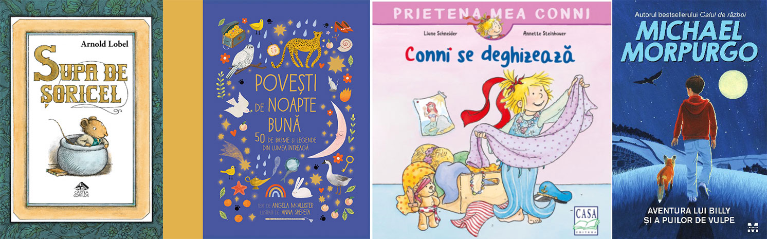 Cărți frumos ilustrate pentru copii și la Cartea Copiilor: Supa de șoricel, de Arnold Lobel, Împărăția fluturilor, de Sibylle von Olfers, și Băiatul acela, Emil, de Astrid Lindgren, și două romane pentru copii, unul la Pandora M, Aventura lui Billy și a puilor de vulpe, de Michael Morpurgo, și la YoungArt Fata din turn, de Katherine Arden, volumul al doilea al unei serii începută acum câțiva ani cu Ursul și privighetoarea.
