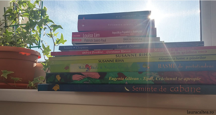 Povești noi din seria „Prietena mea, Conni”, la ed. Casa: Conni învață să călărească și Conni se deghizează (nu știu alții cum sunt, dar, de ceva vreme, eu citesc sistematic câteva cărți cu Conni zilnic; uneori și de mai multe ori pe zi), și, tot aici: Iulia are nevoie de consolare, Să descoperim spațiul, Călătoresc cu trenul și La doctor.