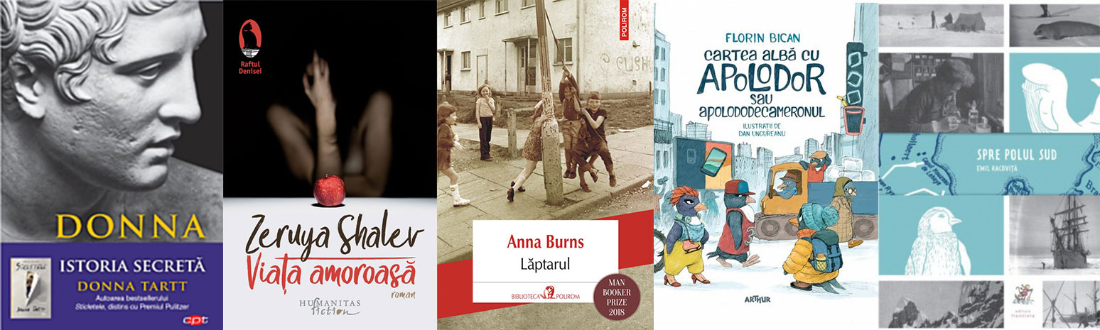 La Editura Litera au apărut multe cărți de ficțiune noi, aș vrea să notez câteva care mi s-au părut mai interesante: în primul rând, Istoria secretă, de Donna Tartt (e o reeditare, dar prima ediție nu se mai găsea de foarte mult timp, așa că e mai mult decât binevenită), Berta Isla, de Javier Marías (am început s-o citesc și mi se pare minunată; nu am mai citit nimic de Javier Marías și mă bucur să-l descopăr), Cântecul lebedelor, de Kelleigh Greenberg-Jephcott (despre Truman Capote și muzele sale), Iarna (al doilea roman din cvartetul „Anotimpuri”), de Ali Smith.