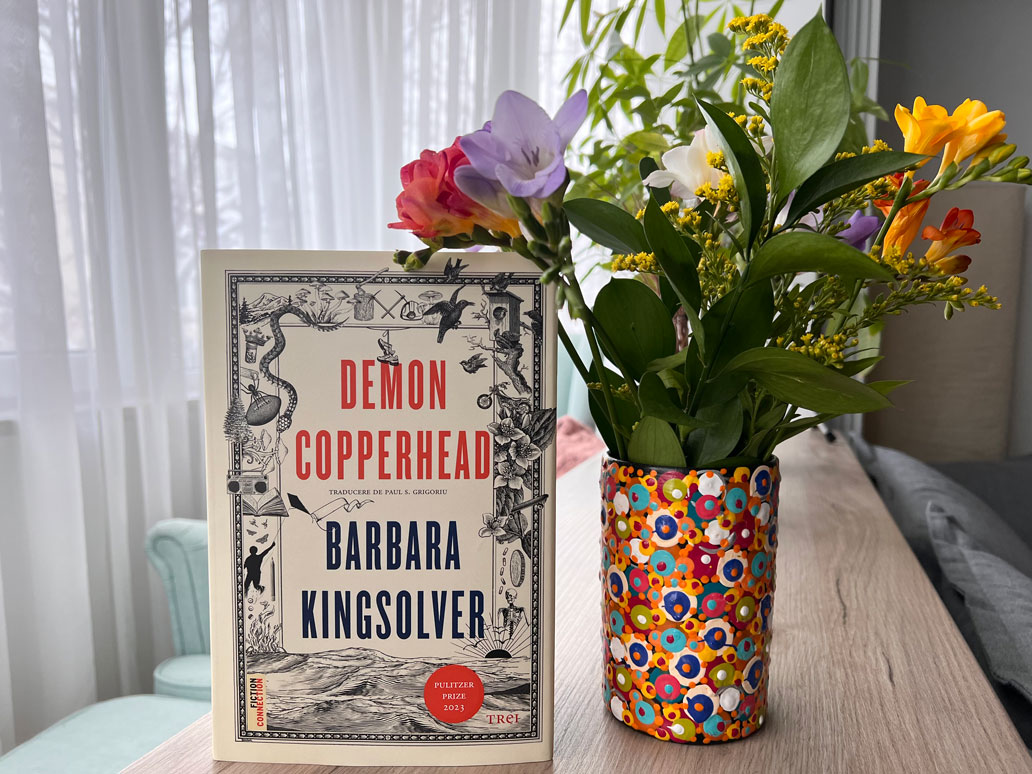 • Demon Copperhead, de Barbara Kingsolver (Ed. Trei; trad. Paul S. Grigoriu): Laureat al Premiului Pulitzer în 2023, romanul Barbarei Kingsolver este o reinterpretare contemporană a celebrului David Copperfield, de Charles Dickens, și una chiar foarte reușită. Critica socială pe care o face Dickens societății victoriene și neajunsurilor sale, o reproduce aici Barbara Kingsolver, doar că referitor la societatea nord-americană de azi, prezentând o Americă provincială săracă, o țară fără „posibilități” și deloc „mare”. Mie nu-mi plac neapărat romanele cu miză socială, însă acesta a fost unul de-a dreptul spectaculos, atât ca scriitură (minunată traducerea lui Paul S. Grigoriu), cât și ca poveste, personaje, implicații sociale și politice, analiză psihologică (felul în care este descrisă și urmărită adicția este de-a dreptul covârșitor). Mi-a plăcut atât de mult că am simțit imediat nevoia să mai citesc ceva scris de aceeași autoare (vezi mai jos.)