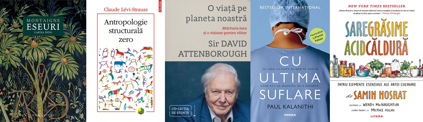 Reeditări: la Nemira s-a reeditat bestsellerul Cu ultima suflare, de Paul Kalanithi, iar la Litera biografia lui Gabriel García Márquez, O viață, de Gerald Martin. Tot la Litera a apărut și o carte de bucate care pretinde că poți găti delicios orice ținând cont doar de ingredientele din titlu: Sare, grăsimi, acid, căldură, de Samin Nosrat (așa simplu să fie?).